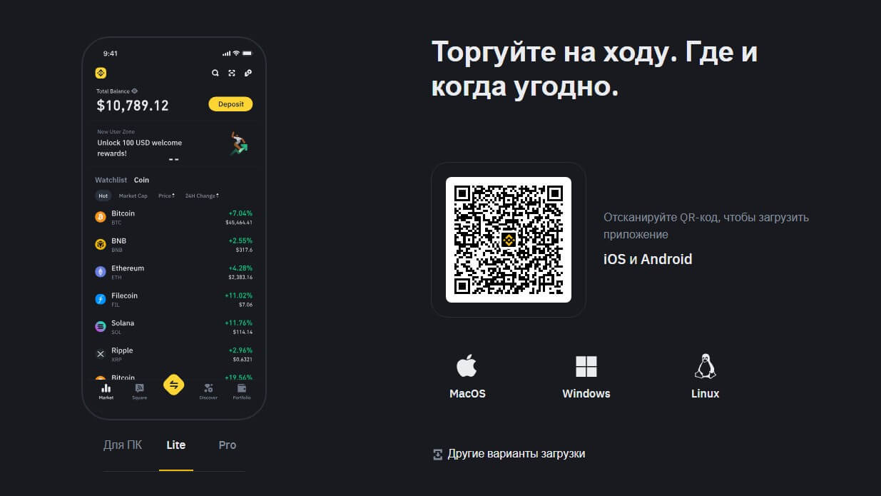 Интуитивно понятный интерфейс и высокая скорость работы делают трейдинг мобильным и доступным в любое время. Binance также регулярно обновляет приложение, добавляя новые функции и улучшая безопасность.