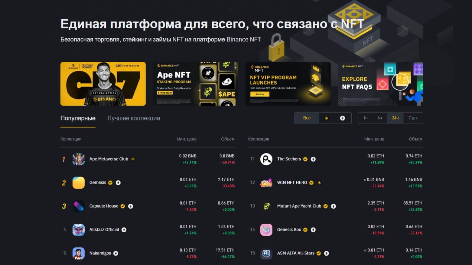 NFT-платформа Binance — это маркетплейс для купли-продажи и создания невзаимозаменяемых токенов (NFT). Она поддерживает как коллекционные NFT, так и геймификационные токены, предлагая обширный выбор цифровых активов. Binance NFT предоставляет эксклюзивные коллекции, возможность участия в аукционах и первичных транзакциях токенов (IGO).