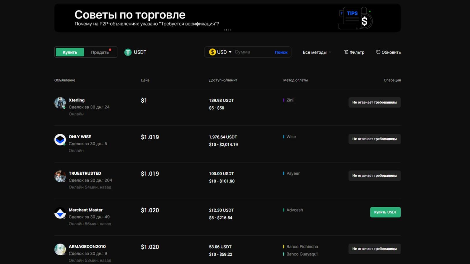 Также можно пользоваться P2P-платформой для покупки криптовалюты за фиатные средства.