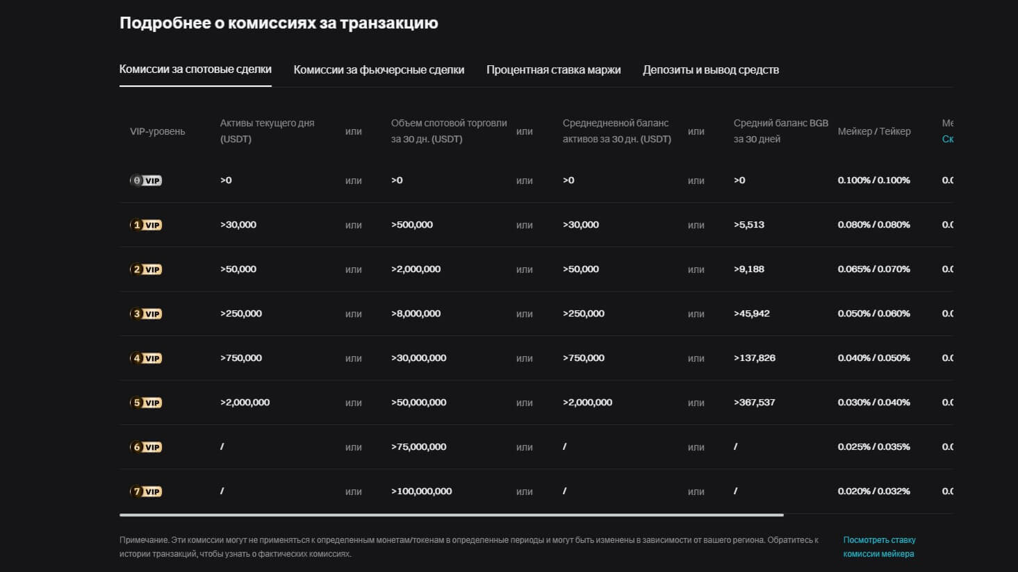 Комиссия за спотовую торговлю составляет 0,1%, а за фьючерсную – 0,02% для мейкеров и 0,06% для тейкеров.