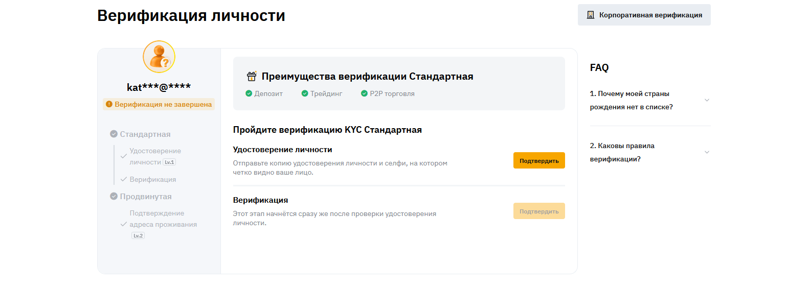 Требуется верификация KYC