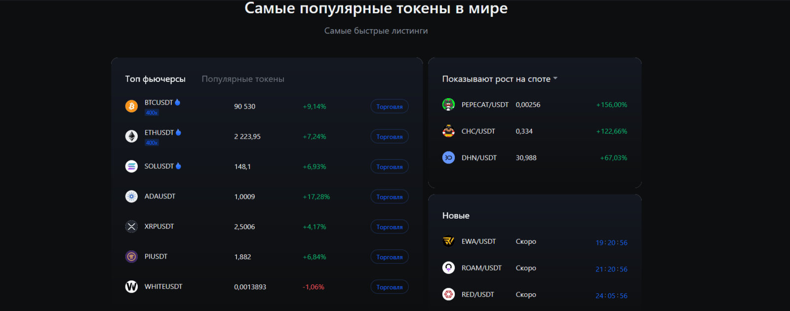MEXC, в свою очередь, известна своими самыми низкими комиссиями относительно других популярных бирж и большим количеством доступных токенов. Она предлагает не только фьючерсную и спотовую торговлю, но и множество инструментов для дохода пассивного. Отлично подходит тем, кто торгует альткоинами на ранних стадиях. В отличие от Bybit, MEXC делает акцент на листинге перспективных и новых криптовалют, что привлекает инвесторов, ищущих «скрытые жемчужины» среди альткоинов.