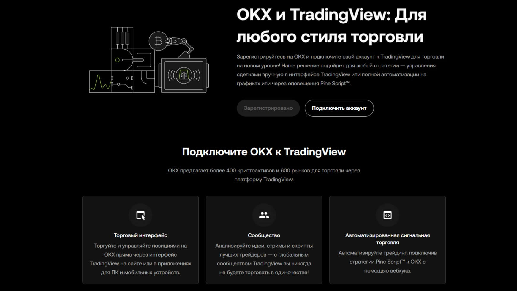 Интеграция с TradingView, предоставляет мощные анализаторы рынка. Благодаря этому партнерству трейдеры используют продвинутые графики, могут настраивать индикаторы, применяют стратегии и прослеживают динамику цен в реальном времени.