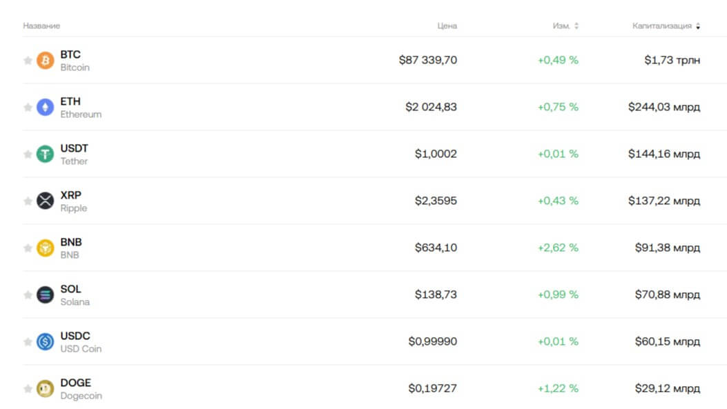 Поддерживаемые монеты