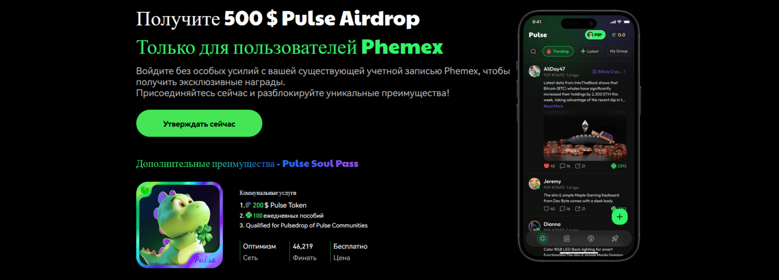 Phemex Pulse — соцплатформа, объединяющая трейдеров для общения, обмена мнениями, стратегиями и рыночными прогнозами. Здесь можно прослеживать топ-трейдеров, обсуждать перспективные токены и делиться торговыми идеями, создавая активное криптосообщество.