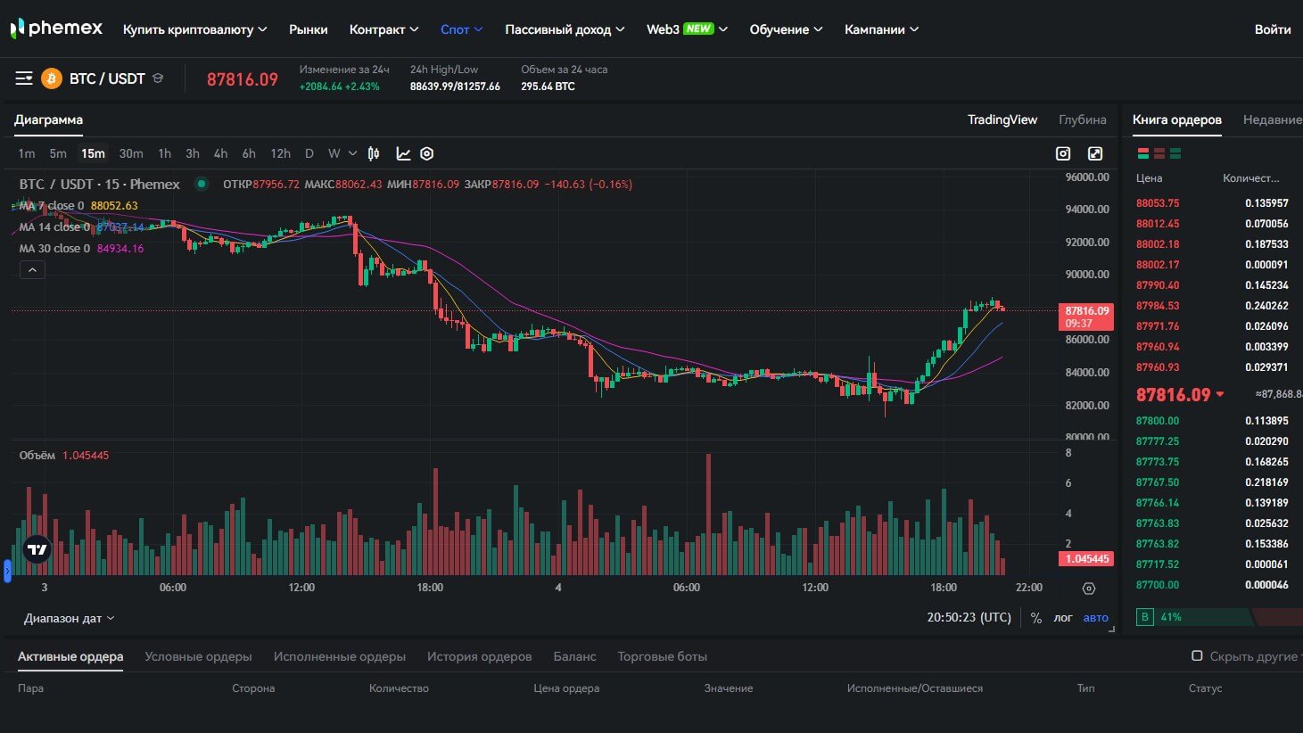 Phemex выделяется низкими комиссиями, быстрым исполнением ордеров и удобным интерфейсом.