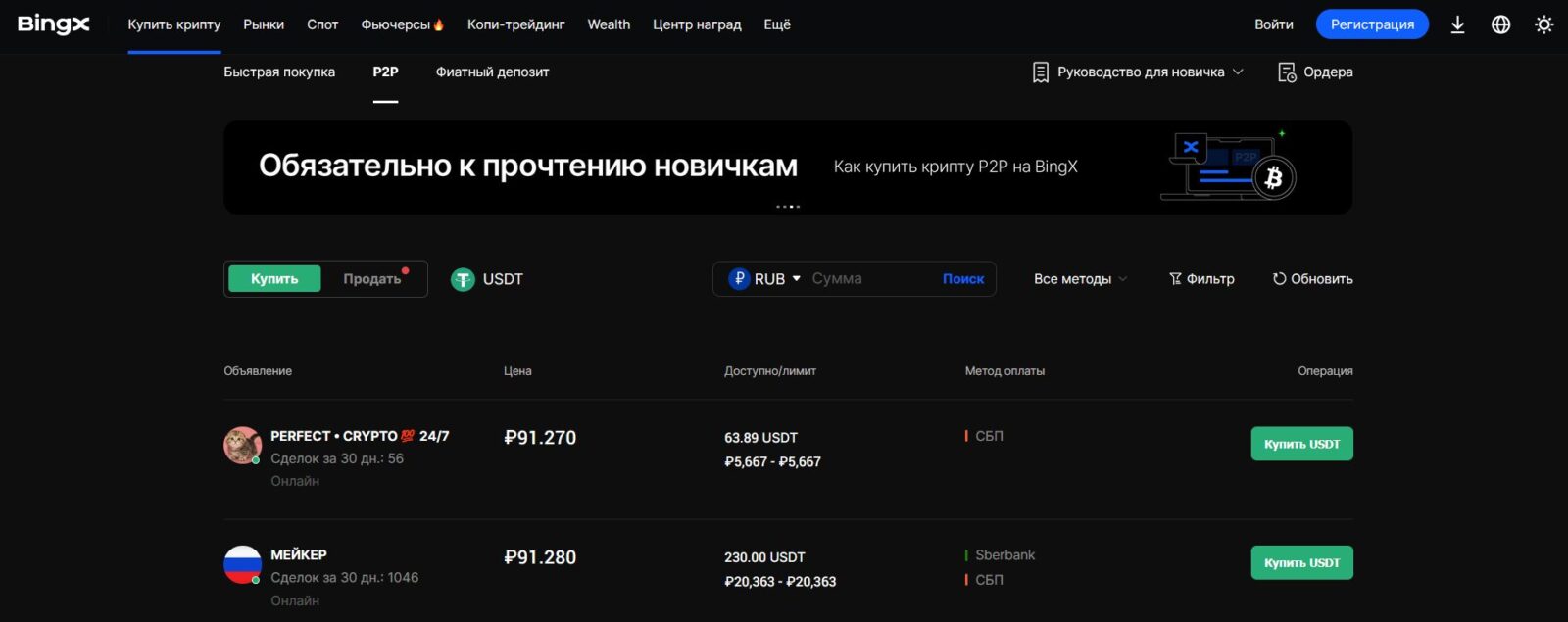 | Спот, фьючерсы, стейкинг, P2P