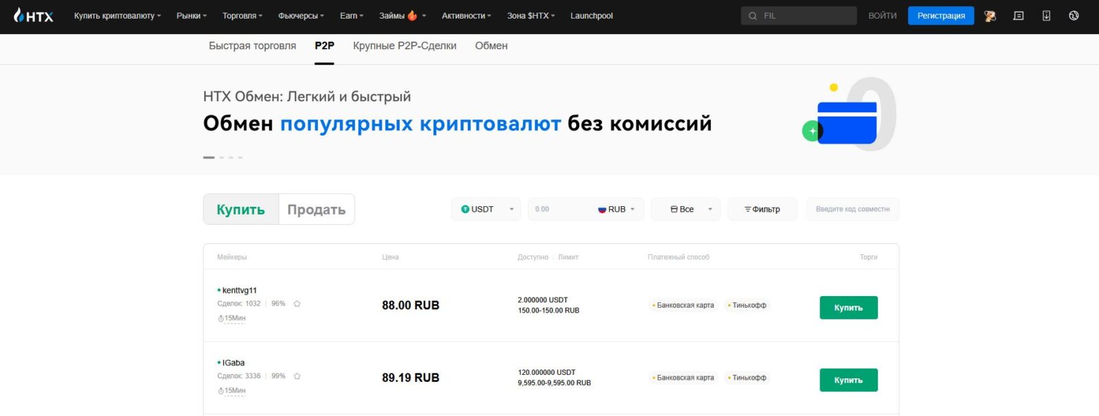 HTX, одна из первых линий обороны в мире децентрализованной торговли, предлагает удобный прямой обмен без посредников. Платформа обеспечивает работу с множеством фиатных единиц через банковские карты, электронные кошельки и популярные платежные системы. Особенностью HTX является встроенный арбитраж для защиты пользователей от мошенничества, а также строгая рейтинговая система участников торгов.